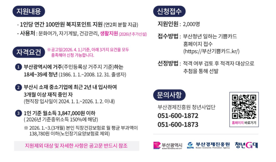 • 부산 청년 100만원 지원 조건 총정리 기쁨카드 신청 방법